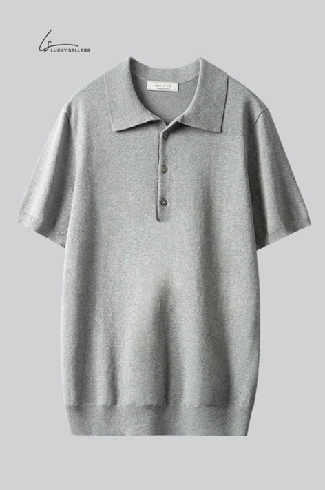 100% Cotton Thin Short Sleeve Button Lapel Polo Shirt Knitted Business Casual Slim Fit Men's T-shirt