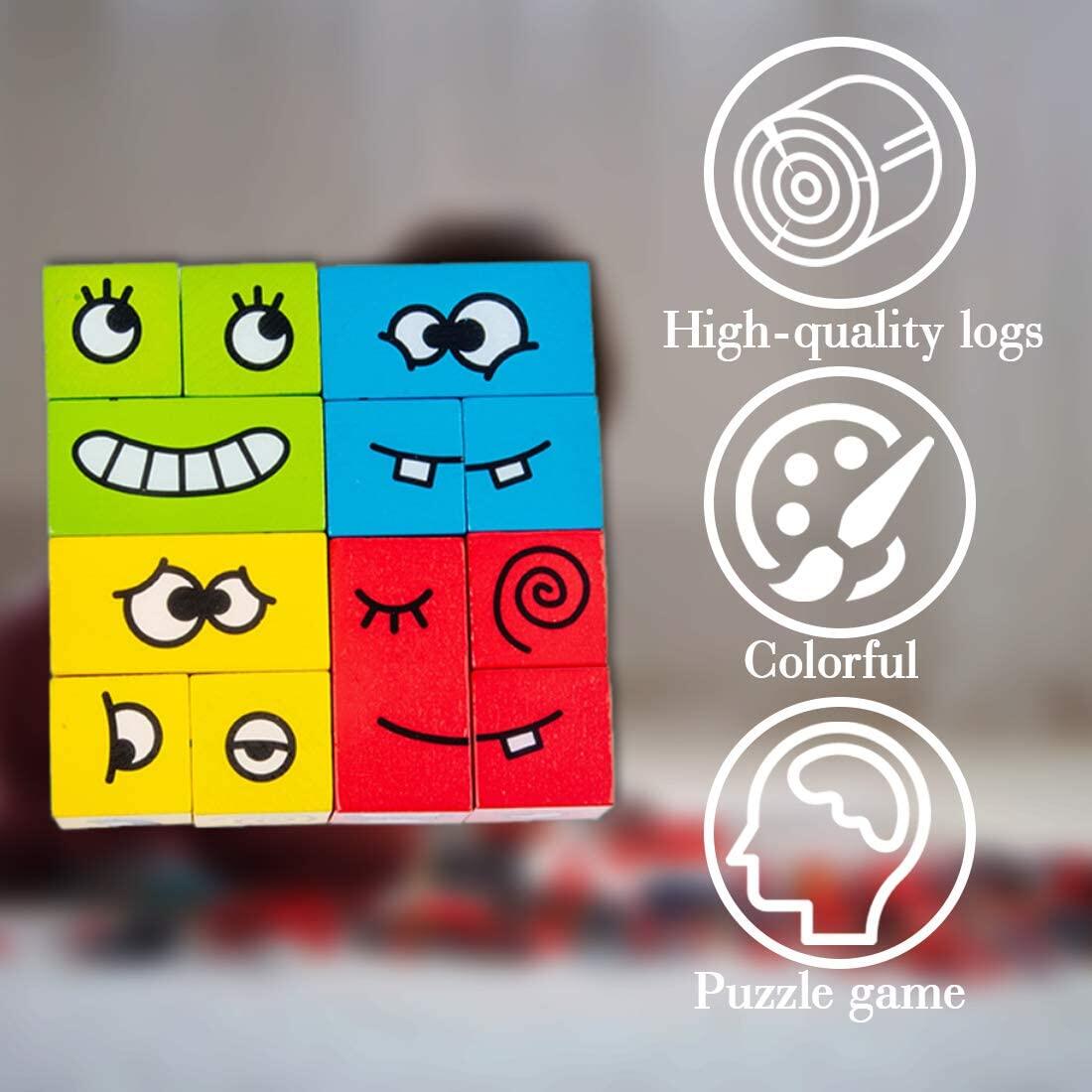 Face-changing, geometric cube figures, building games and matching game, guide your baby to observe the shape, play a matching game, and learn to recognize the shape and color while playing. great challenge of eyesight & thinking, improve children's hands-on ability, hand-eye coordination, logical thinking, active brain function.
