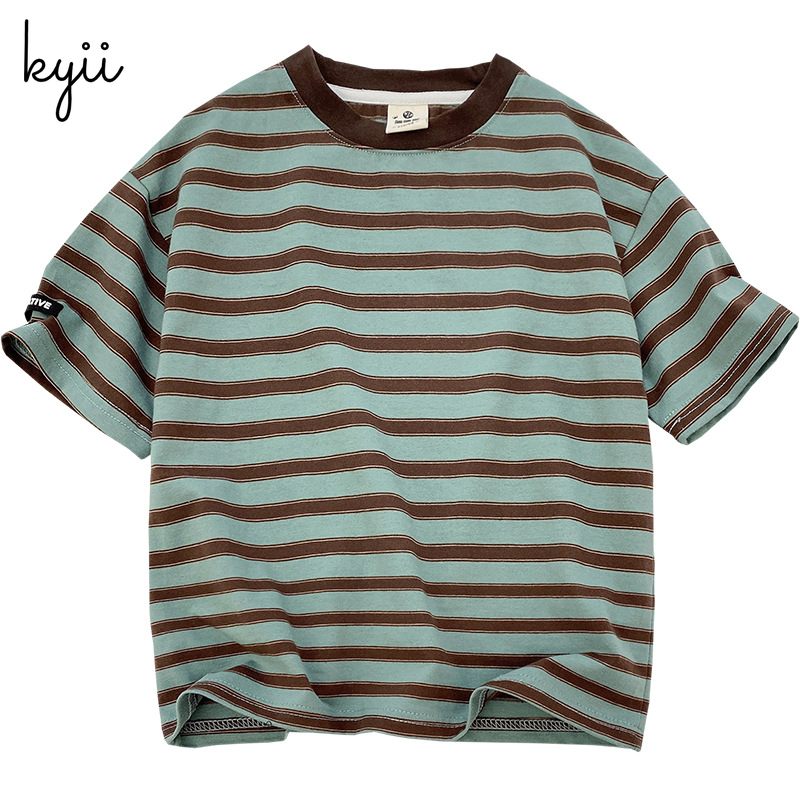 KYII stripe short sleeve Casual boys cotton summer loose shirt Korean Shirt kyb042