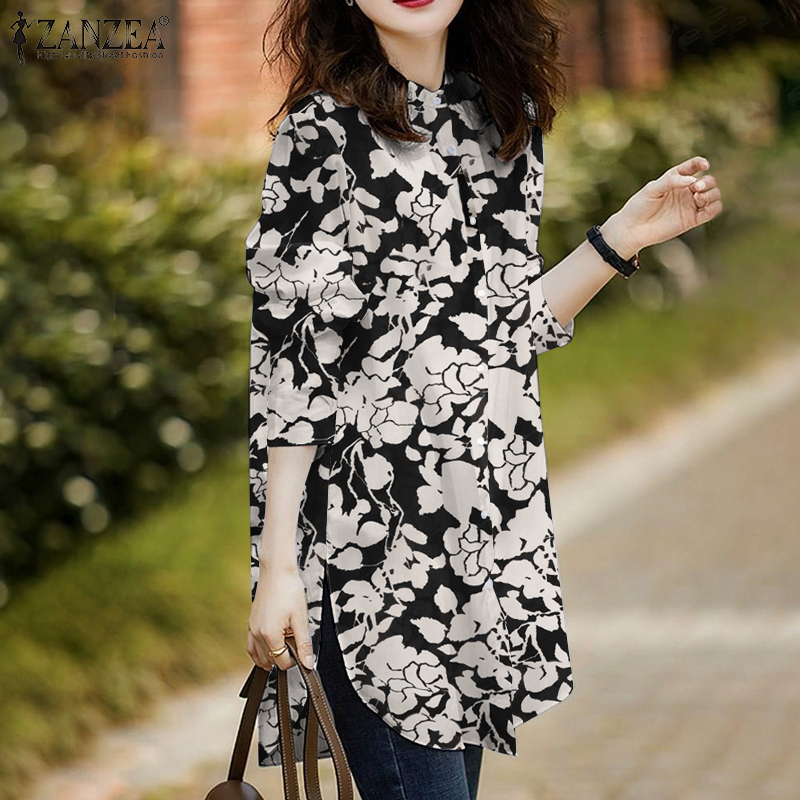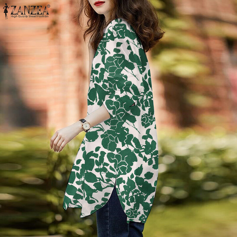ZANZEA Womens Floral Print Vintage Blouse Long Sleeve O Neck Summer Holiday Shirt Tops #7