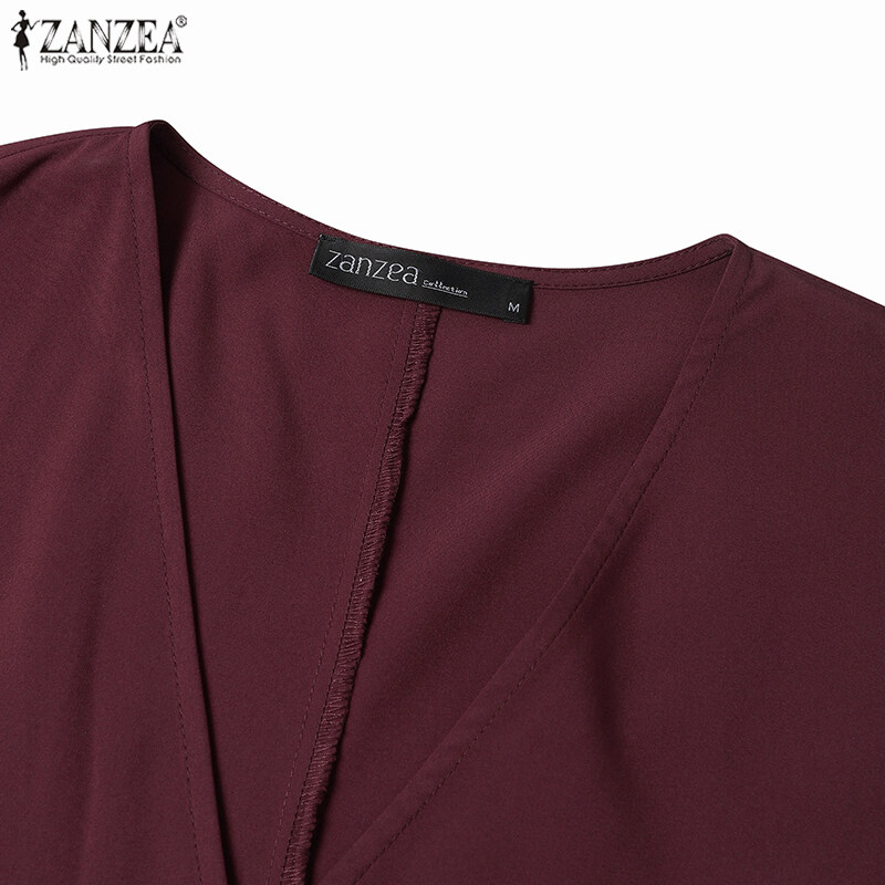 ZANZEA Womens Puff Long Sleeve V Neck Plain Fashion Party Evening Swing Maxi Dress #11