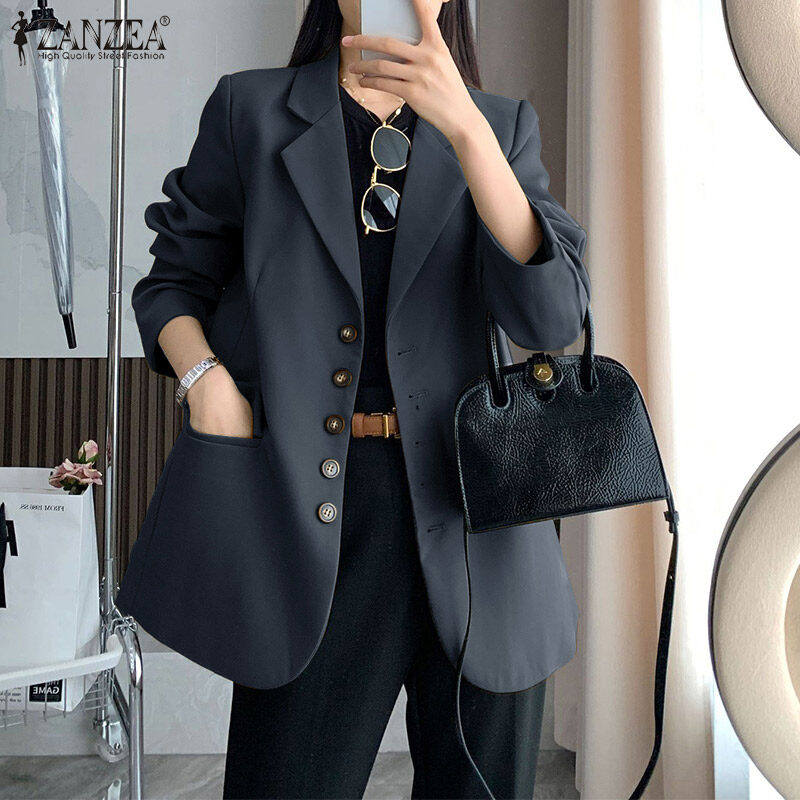 ZANZEA Women's Fashion Commute Single-Breasted Suits Business Leisure Lapel Full Sleeve Blazer #11