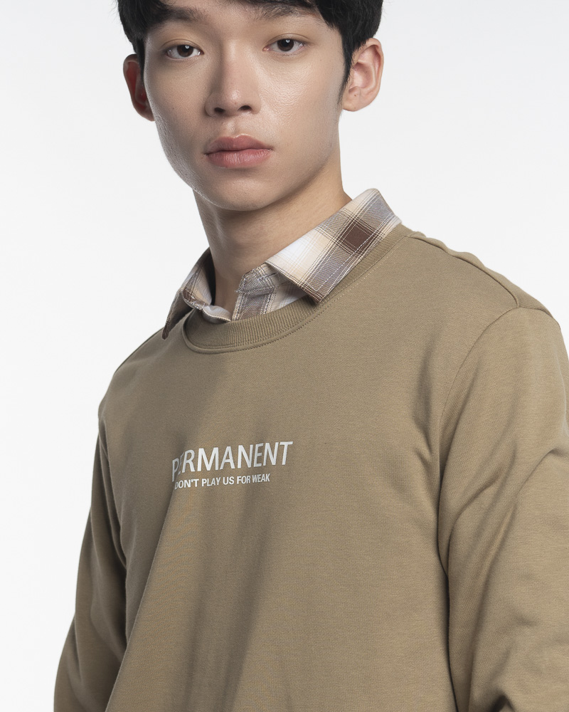 Regular Solid Coloured Long Sleeve Sweatshirt with Round Neck. Comes with Permanent Slogan at the front. Made of cotton.
