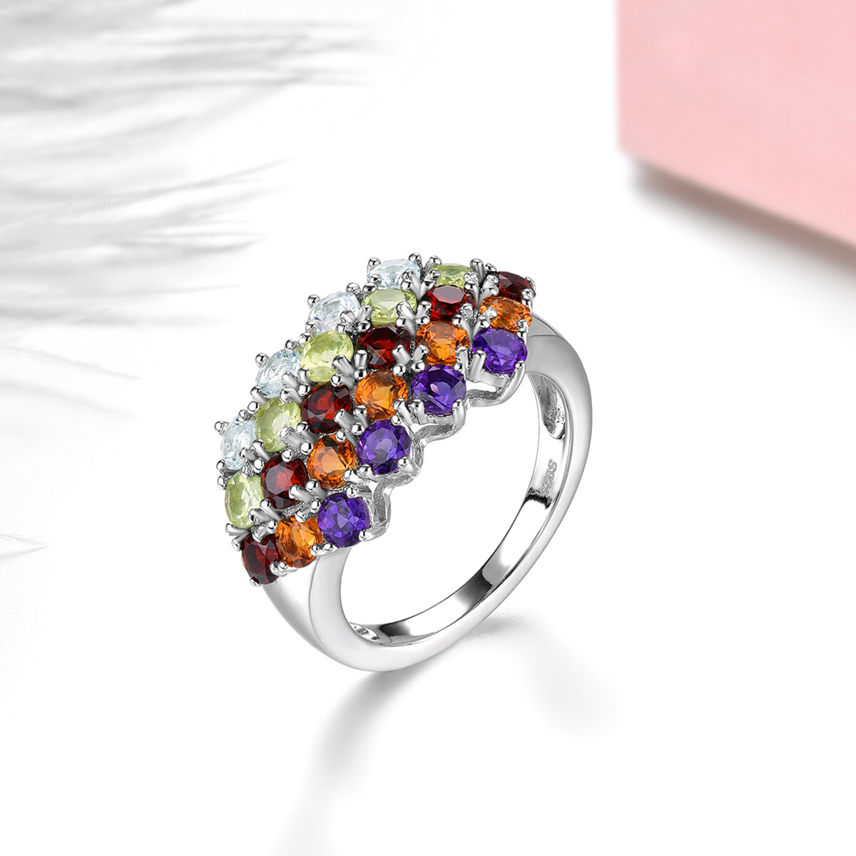 Lohaspie Jewelry Real 3 Carats 925 Silver Ring With Gemstone Natural Peridot Garnet Ring Colorful Gemstone Ring Garnet Ring For Women Jewelry Christmas Gift