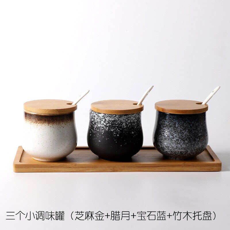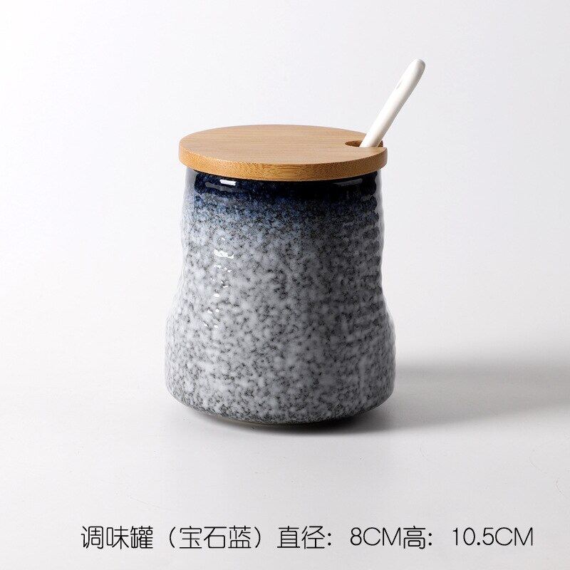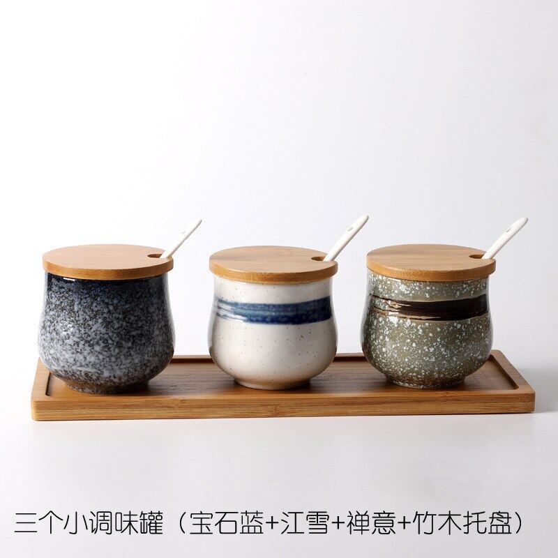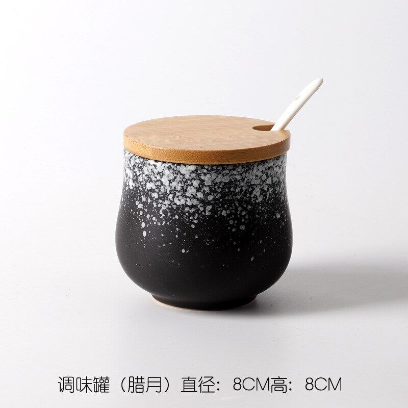 Creative Japanese-Style Ceramic Seasoning Jar Set Restaurant With Lid Spoon Salt Pepper MSG Jar Home Kitchen Seasoning Bottle